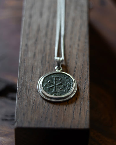Pendentif Chrisme en argent – Monnaie romaine authentique de 353 après J.-C