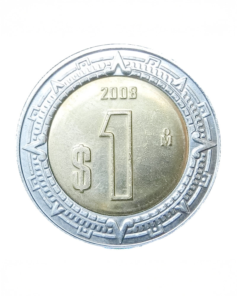 Cet anneau unique a été façonné à partir de la partie extérieure d’une véritable pièce mexicaine de 1 Peso bimétallique, en ne conservant que le cercle en acier inoxydable.