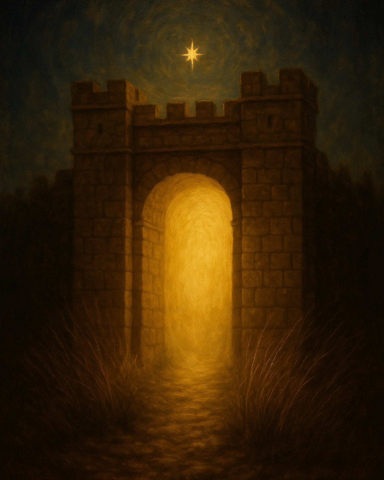 Mais c’est le revers de la monnaie qui attire le regard : une porte de camp surmontée de deux tourelles, avec une étoile placée juste au-dessus. Une scène rare, forte de sens.